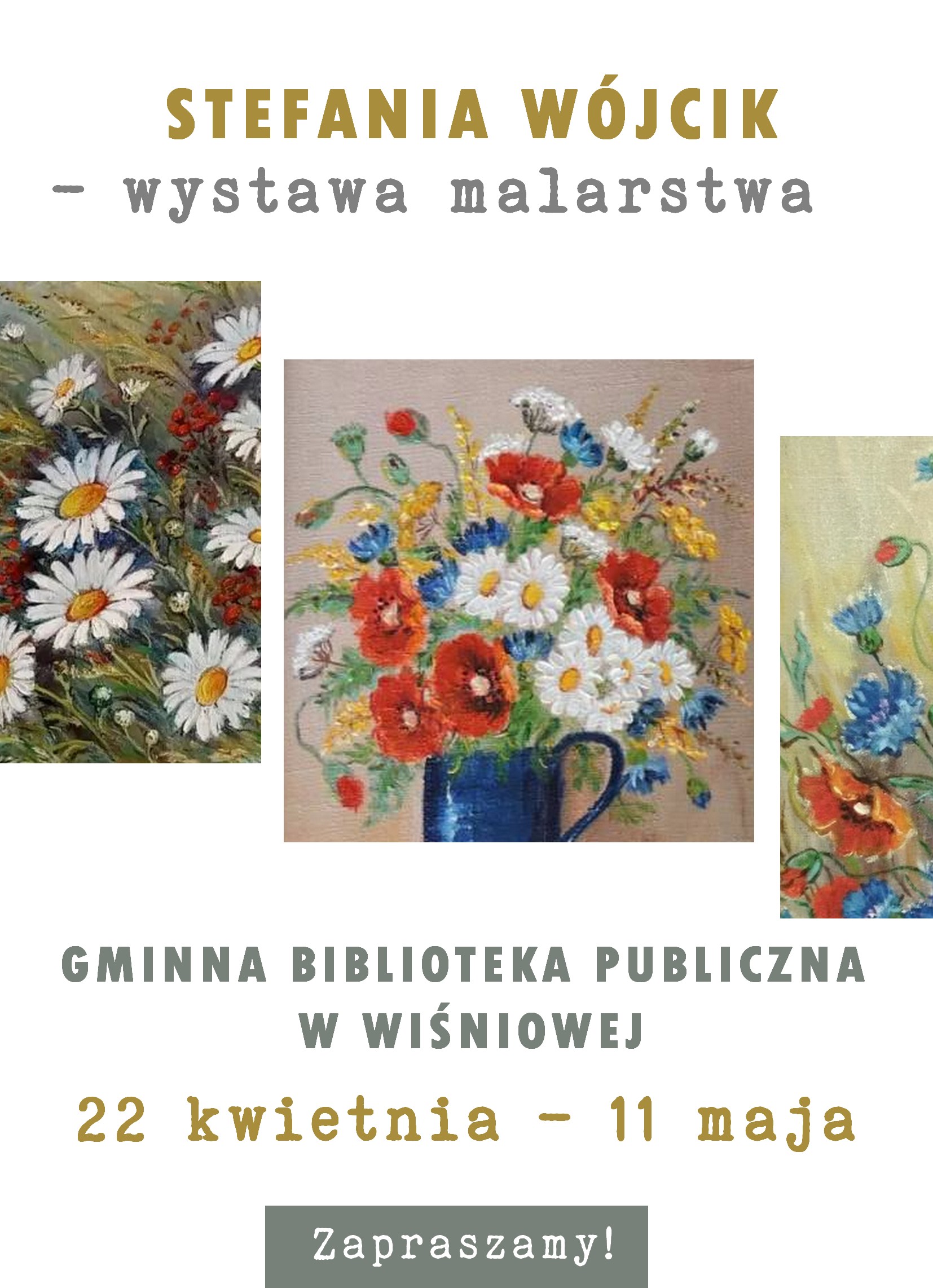 W dniach od 22 kwietnia do 11 maja podziwiać można u nas obrazy olejne i akwarele pani Stefanii Wójcik z Janowa Lubelskiego, zapraszamy w godzinach otwarcia biblioteki!